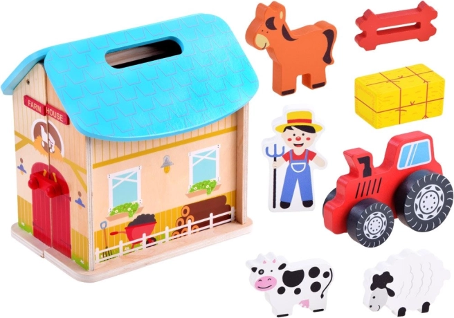 Bevat dierfiguren zoals een koe, ram en paard. Alles is gemaakt van duurzaam hout.