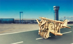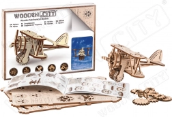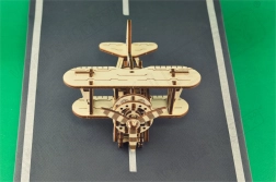 De houten mechanische bouwdoos in de vorm van een dubbeldekker biedt een uniek ontwerp en verrassende details. Met modellering precisie zul je luchtavonturen beleven naast luchtvaartpioniers zoals Antoine de Saint-Exupéry. Dit model wordt aangedreven door rubberen banden met instelbare acceleratie, die de propeller doen draaien en het vliegtuig laten versnellen op een vlakke ondergrond.