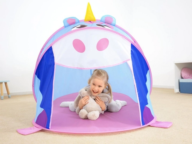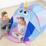 Ontdek de magie van fantasierijk spel met deze speeltent in de vorm van een eenhoorn, die kinderen betovert met vrolijke kleuren en een vriendelijk design. De tent klapt zichzelf in een oogwenk uit en is klaar voor plezier in huis, op het terras, in de tuin of aan het water. De duurzame polyesterstof en de gaaszijpanelen zorgen voor goede ventilatie en overzicht voor ouders.