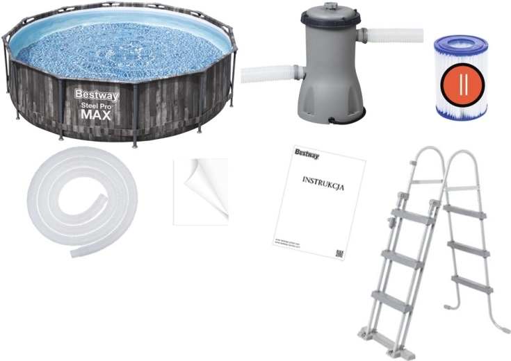 Voor gemakkelijk in- en uitstappen is er een comfortabele ladder inbegrepen met de mogelijkheid om de treden op te tillen, waardoor de toegang voor kinderen zonder toezicht van een volwassene kan worden geblokkeerd. Het zwembad heeft een capaciteit van 9150 liter water (bij 90% vulling), wat ook comfortabel duiken mogelijk maakt.