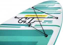 De opblaasbare SUP BESTWAY HUAKA'I is een veelzijdig allround paddleboard voor rustig water en kleinere golven. Dankzij de stijve Drop Stitch-kern en het drielaagse Tritech-laminaat biedt het uitstekende stabiliteit, stijfheid en duurzaamheid. Het antislipdek zorgt voor een zekere houding en de voorste cargo-bungee houdt je spullen veilig op hun plek.