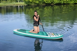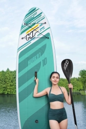 Ontdek relaxed bewegen op het water met het opblaasbare paddleboard BESTWAY HUAKA'I 10' met afmetingen 305 × 84 × 15 cm. De stabiele allround vorm, de duurzame Tritech- en Drop Stitch-constructie, het hoge draagvermogen van 130 kg en de complete uitrusting inclusief een verstelbare peddel, handpomp, leash, vin, rugzak en reparatieset maken van dit SUP-board een uitstekende keuze voor recreatie, fitness en langere tochten.