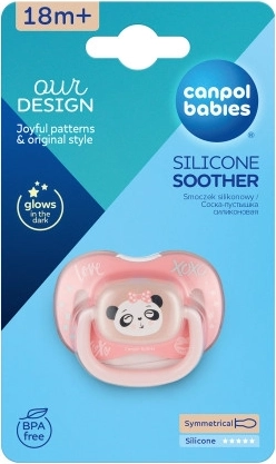 De Canpol babies Exotic Animals 18m+ fopspeen combineert veiligheid, comfort en een speels pandadesign. De symmetrische siliconen speen past zich van nature in het mondje aan, ongeacht de positie, wat zorgt voor rustig zuigen en een tevreden kind. De in het donker lichtgevende kern maakt nachtelijk zoeken makkelijker.