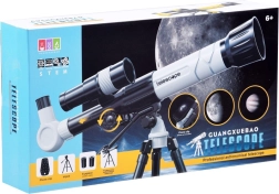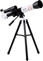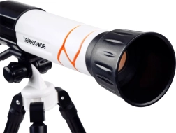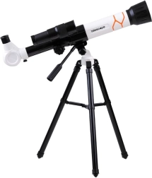 De kindertelescoop is een uitstekende start in de wereld van de astronomie – hij stimuleert nieuwsgierigheid en maakt comfortabel observeren van de maan, sterren en ook objecten op aarde mogelijk. Het lenzensysteem met schuine spiegel verbetert het contrast, vermindert optische fouten en levert een stabiel, rechtopstaand beeld. Dankzij de compacte lengte en het lichte ontwerp plaats je hem eenvoudig op een tafel en is hij in een mum van tijd klaar voor gebruik.