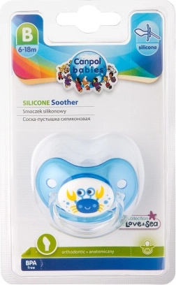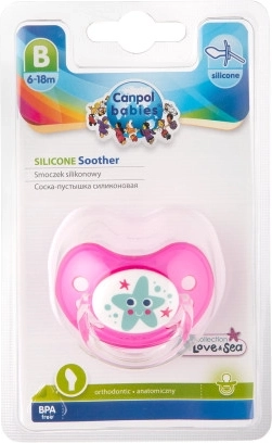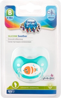De LOVE&SEA fopspeen is gemaakt van hoogwaardig siliconen zonder smaak of geur. Hij heeft een lichtgevende schild. Voorzien van een orthodontisch gevormd zuiggedeelte. Dankzij de ventilatiegaatjes in het schild irriteert de speen de gevoelige babyhuid rond de mond niet. Het gedempte licht in de donkere schijf maakt het ’s nachts makkelijker terug te vinden. BPA-vrij. Verkrijgbaar in meerdere kleuren en 3 maten: 22/506 0–6 maanden, 22/507 6–18 maanden, 22/508 vanaf 18 maanden. Het speciale geventileerde schild voorkomt irritatie van de huid rond de tere babymond. De speen is gemaakt van transparant siliconen zonder smaak of geur. Comfortabele ring – vergemakkelijkt het aanreiken van de fopspeen en maakt eenvoudige bevestiging aan een lint of speenketting mogelijk. Kleurrijk en origineel design. Ontworpen voor kinderen van 6–18 maanden. Gemaakt van veilig materiaal, vrij van bisfenol A. Gebruiksaanwijzing: Steriliseer de fopspeen vóór het eerste gebruik om hygiënische redenen ongeveer 5 minuten in kokend water. Knijp na afkoelen het resterende water uit de speen. Was de fopspeen vóór elk gebruik grondig in warm water. Gebruik geen antibacteriële of chemische reinigingsmiddelen. Overmatig gebruik van reinigingsmiddelen kan schade aan kunststof onderdelen veroorzaken. Dompel de fopspeen nooit onder in zoete substanties of medicijnen – dit kan tandglazuurbeschadiging veroorzaken. Gebruik een fopspeen maximaal 1–2 maanden en vervang hem daarna om hygiënische en veiligheidsredenen. Als de fopspeen in de mond van het kind verdwijnt, RAAK NIET IN PANIEK – de fopspeen is zo ontworpen dat het kind hem niet kan inslikken; u kunt hem in zo’n geval veilig uit de mond verwijderen. Verwijder de fopspeen zo voorzichtig mogelijk. Bewaar de fopspeen in een schoon, droog en afgesloten doosje. We raden af fopspenen te gebruiken bij kinderen ouder dan 3 jaar. Belangrijk! Voor de veiligheid en gezondheid van uw kind! Controleer de fopspeen vóór elk gebruik. Test de speen door hem grondig in alle richtingen uit te rekken. Gooi de fopspeen bij de eerste tekenen van beschadiging direct weg en gebruik hem niet verder. Gebruik alleen clips en speenkettingen die voldoen aan de norm EN12586. Bevestig de fopspeen nooit aan koordjes, veters of linten van kleding. Verstikkingsgevaar. Laat de fopspeen niet in direct zonlicht, dicht bij een warmtebron of langer dan aanbevolen in desinfectiemiddelen liggen – dit kan de speen verzwakken. Bewaar de verwijderde dop buiten bereik van kinderen – ter voorkoming van verstikking. De siliconen fopspeen voldoet aan de volgende eisen: Richtlijn 2001/95/EG van het Europees Parlement en de Raad inzake algemene productveiligheid; EN 1400-1 Producten voor de verzorging van kinderen – Fopspenen voor zuigelingen en peuters – Deel 1: Algemene veiligheidsvereisten en productinformatie; EN 1400-2 Producten voor de verzorging van kinderen – Fopspenen voor zuigelingen en peuters – Deel 2: Mechanische eisen en beproevingen; EN 1400-3 Producten voor de verzorging van kinderen – Fopspenen voor zuigelingen en peuters – Deel 3: Chemische eisen en beproevingen.