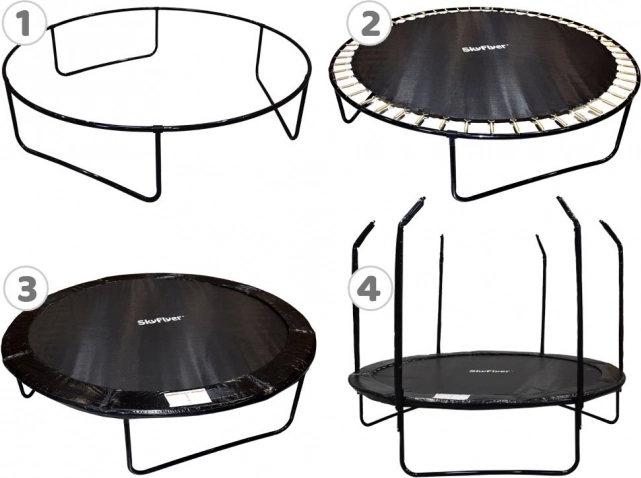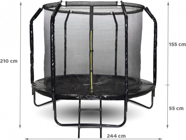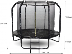 De SKYFLYER-trampoline met een diameter van 244 cm is een uitstekende keuze voor gezinnen die actieve beweging bij kinderen en volwassenen willen stimuleren. De robuuste constructie met U-poten, sterke veren en het dichte veiligheidsnet met stabiele ringversteviging zorgen voor maximale veiligheid en stabiliteit tijdens het springen.