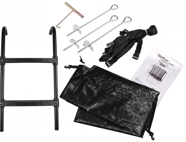 Ladder, grondankers met spanbanden, waterdicht afdekzeil en een gereedschap voor het spannen van de veren – alles voor eenvoudige montage en veilig gebruik.