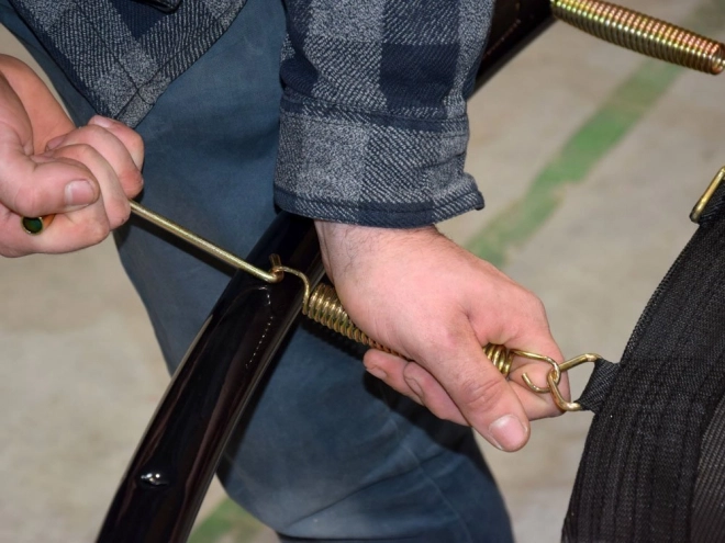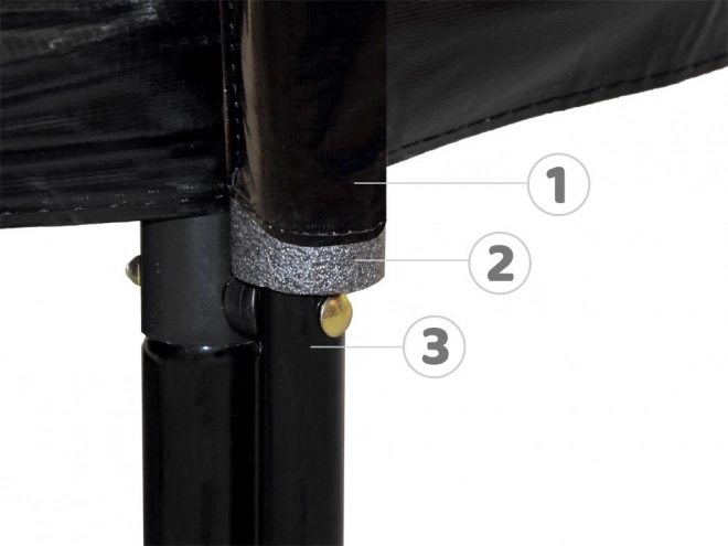 - trampoline met zwart gelakte constructie en beschermrand over de veren,