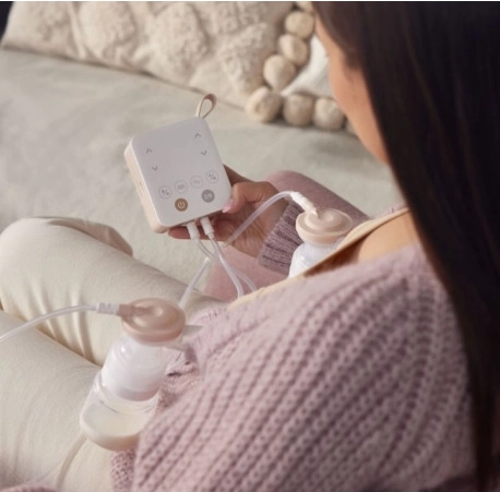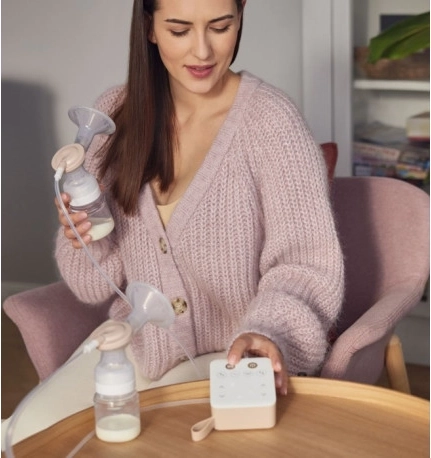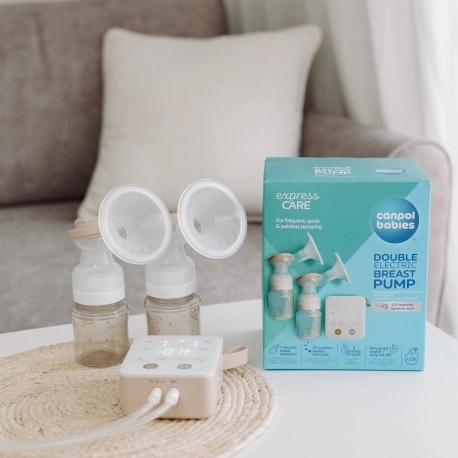 De dubbele elektrische borstkolf ExpressCare is een draadloze kolf voor 2 borsten voor frequent, snel en pijnloos kolven. Perfect voor moeders die flesvoeding geven met afgekolfde melk, moeders die borstvoeding en flesvoeding combineren, moeders van een tweeling en actieve moeders die terugkeren naar het werk en niet willen stoppen met borstvoeding geven. De dubbele elektrische borstkolf ExpressCare is een 2-in-1 apparaat met de functie van een elektrische neusaspirator. De ExpressCare-kolf heeft 3 bedrijfsmodi gebaseerd op het natuurlijke tweefasen-zuigritme van de baby. In de eerste fase stimuleert het een snellere melkstroom en schakelt vervolgens over naar een langzamere en diepere zuigmodus. De derde modus kan aan het einde van het kolven worden gebruikt om de borsten leeg te maken en de lactatie te ondersteunen. De ExpressCare-kolf heeft een grote reeks instellingen voor zuigkracht, 9 niveaus per modus, waardoor de kracht kan worden aangepast aan de behoeften van elke vrouw voor comfortabel kolven. Bovendien is het mogelijk om een individuele kolfmodus voor elke borst in te stellen. De elektrische ExpressCare-kolf is discreet en zeer stil – slechts 40 decibel*, waardoor je ook ’s nachts kunt kolven zonder bang te zijn je baby wakker te maken. Een opgeladen borstkolf kun je overal mee naartoe nemen en draadloos gebruiken, zelfs zonder stopcontact in de buurt. Een volle batterij biedt tot 120 minuten draadloos gebruik (3–4 keer kolven). De batterij wordt opgeladen via een USB-kabel, zodat je ook via een powerbank kunt opladen als extra bescherming tegen leeglopen wanneer je van huis bent. De ergonomische vorm van de trechter past zich aan verschillende borstvormen aan, zodat het kolfproces natuurlijk aanvoelt. De trechter met een zachte, geprofileerde massage-inzet van fijn siliconen irriteert de gevoelige tepels niet en verhoogt het comfort tijdens het kolven. De ExpressCare-kolf heeft een tepelcorrectiefunctie die helpt ingetrokken tepels te vormen, zodat de baby gemakkelijker kan aanhappen en een goede melkproductie behouden blijft. Eenvoudige bediening via een aanraakpaneel met een duidelijk display dat informeert over de actieve modus, zuigkracht en het batterijniveau. Je kunt de dubbele elektrische ExpressCare-kolf gebruiken om melk uit beide borsten of uit één borst te kolven. De ExpressCare-borstkolf is gemaakt uit een klein aantal componenten, wat het reinigen en monteren vergemakkelijkt. Alle onderdelen zijn vrij van schadelijke BPA (bisfenol A), waardoor het volledig veilig is voor direct contact met voedsel, inclusief moedermelk. *Voorbeeld geluidsniveau: 40–45 dB koelkast, 58 dB magnetron, 60 dB vaatwasser. De dubbele elektrische borstkolf ExpressCare is geschikt voor alle wijdhals anti-colic en standaard Canpol babies-flessen. Ideaal voor moeders die flesvoeding geven met afgekolfde melk of borstvoeding combineren met flesvoeding. *Opmerking zie afbeelding: De voedingsbeha dient alleen voor het comfort van de moeder. Dankzij de beha hoef je de kolf niet vast te houden. De beha maakt geen deel uit van onze aanbieding. Dit product kan afzonderlijk worden aangeschaft. Set bevat: siliconen massage-inzetten x2, kolfhuis x2, siliconen terugslagkleppen x2, flesjes x2, trechterkappen x2, siliconen slangetjes x2, slangetjes x4, pompunits met bedieningspaneel, flesdoppen x2, flessenspenen x2, schroefringen x2, afdichtschijven x2, flesadapters x2, netadapter, oplaadkabel met USB. Twee siliconen uiteinden zijn bevestigd aan de borstkolf en kunnen, correct gemonteerd op de kabel van de borstkolf, worden gebruikt als elektrische neusaspirator. Los verkrijgbaar: verwisselbare reserve trechter 12/217 met maat 27 mm (groter dan standaard) – de juiste trechtermaat is zeer belangrijk voor comfort en efficiëntie van het kolven. Geschikt voor moeders met grotere tepels. Intuïtief aanraakbedieningspaneel – eenvoudig in gebruik. Tot 120 minuten draadloos werken (3–4 keer gebruiken). Persoonlijke instellingen – brede mogelijkheid om de zuigkracht aan te passen voor een individuele zuigmodus voor elke borst. 2-in-1 – elektrische neusaspirator in de set. Zeer stille werking – slechts 40 decibel* zorgt voor comfort bij nachtelijk kolven. 3 bedrijfsmodi – gebaseerd op het natuurlijke tweefasen-zuigritme van de baby. 27 instellingen voor zuigkracht – brede reeks zuigkrachtinstellingen. Zachte en flexibele trechter – gemaakt van fijn siliconen dat gevoelige tepels niet irriteert. Ergonomische trechtervorm – past zich aan verschillende borstvormen aan. Tepelcorrectie – helpt ingetrokken tepels te vormen. Handig opladen – netstroom, USB-kabel of powerbank. Gemaakt van veilig materiaal zonder bisfenol A. WAARSCHUWING! Laad de batterij volledig op vóór het eerste gebruik. De borstkolf heeft een oplaadbare lithium-ionbatterij en vereist geen AA-batterijen of permanente aansluiting op het elektriciteitsnet. Stop na volledig opladen met opladen om schade aan de batterij te voorkomen. Laat de batterij niet volledig leeglopen om de levensduur te verlengen. De batterij wordt opgeladen via de netadapter. Sluit voor het opladen één zijde van de oplaadkabel aan op de borstkolf en de andere op de netadapter. Steek vervolgens de netadapter in het stopcontact. Volledig opladen duurt ongeveer 120 minuten. Wanneer de batterij volledig is opgeladen, stopt de LED-batterij-indicator met knipperen. De borstkolf kan op elk moment worden opgeladen. Je hoeft niet te wachten tot de batterij volledig leeg is. Bij een volle lading kan de borstkolf ongeveer 120 minuten werken. De borstkolf heeft een ingebouwde timer en schakelt automatisch uit na 30 minuten gebruik. Druk op de AAN/UIT-knop om het apparaat opnieuw te starten. Voor elk gebruik: Was je handen grondig. Zorg dat er geen vuil, vloeistof of vocht in de siliconen slang zit. Zet de borstkolf nooit aan als je water in de siliconen slang ziet. Waarschuwing! Blaas niet met de mond in de siliconen slang om water te verwijderen. Plaats