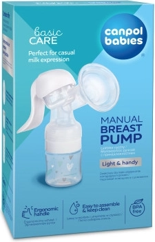 De handmatige Basic-borstkolf is eenvoudig te gebruiken en te onderhouden. Het kleine aantal onderdelen maakt het reinigen gemakkelijk. De speciaal gevormde hendel maakt het kolven zeer comfortabel en vereist geen grote kracht. Een praktische voet zorgt voor een stabiele stand van de kolf. De gevormde trechter volgt perfect de vorm van de borst. De siliconen massage-inzet masseert de borst zachtjes en helpt door het afkolven van overtollige melk ontstekingen te voorkomen. Compatibel met andere accessoires voor het bewaren van melk – u kunt rechtstreeks kolven in klassieke flessen en flessen met brede hals van Canpol babies. De handmatige borstkolf is dankzij de meegeleverde adapter geschikt voor alle Canpol babies-babyflessen met brede en smalle hals. Set bevat: kolfhuis met trechter en kap, fles met brede hals 120 ml met speen 3 m+, flesadapter. Effectieve ondersteuning voor incidenteel kolven. Ergonomisch handvat – zorgt voor een comfortabele grip tijdens het kolven. De gevormde trechter zorgt ervoor dat de trechter nauwsluitend op de borst past. De siliconen trechter zorgt voor zacht en effectief kolven. Zeer eenvoudig in gebruik – eenvoudig te monteren en te reinigen. Licht en praktisch – ideaal voor thuis en onderweg. Compatibel met alle Canpol babies-babyflessen. Gemaakt van veilig materiaal, vrij van bisfenol A. Wanneer de borstkolf gebruiken? Wacht indien mogelijk 2–4 weken na de bevalling met het gebruik van een borstkolf totdat de lactatie stabiel is. Uitzonderingen op bovenstaande regel: Als u te veel melk heeft en de borsten gespannen en hard zijn. Het afkolven van overtollige melk vóór of tijdens het voeden verlicht de overvolle borst en maakt aanleggen voor de baby makkelijker. De tepel is ingetrokken door een lange pauze tussen voedingen. U heeft ingetrokken, platte of beschadigde tepels (kolven helpt ingetrokken of platte tepels te vormen). Als u tussen voedingen plotselinge stuwing voelt en de baby niet wilt wekken. De baby is ziek en kan niet zuigen. Bij geringe melkproductie – het gebruik van de borstkolf stimuleert de werking van de melkklieren. Als u weer aan het werk gaat en niet wilt stoppen met borstvoeding – het is nodig het natuurlijke proces te simuleren door te kolven. Hoe vaak kolven met de borstkolf? Als de moeder niet kan voeden, raden we aan 8 keer per dag te kolven. Dit houdt de lactatie op peil. In het begin kunt u moeite hebben om grotere hoeveelheden melk af te kolven, maar na enkele dagen zal de hoeveelheid toenemen. Bij stabiele lactatie ligt de eenmalig afgekolfde hoeveelheid tussen 30–60 ml, daarom zijn meerdere sessies nodig om één portie te verkrijgen. Hoe de borstkolf reinigen en steriliseren? Haal de kolf voor het eerste en elk volgend gebruik uit elkaar. Was alle onderdelen van de kolf en de fles/opslagcontainer grondig in warm water met een mild afwasmiddel, spoel goed af en steriliseer volgens onderstaande instructies. Steriliseer om hygiënische redenen alle onderdelen van de kolf en de fles/opslagcontainer vóór het eerste gebruik 5 minuten in kokend water. Steriliseer om hygiënische redenen vóór elk volgend gebruik alle onderdelen door te overgieten met kokend water of in een stoomsterilisator. Waarschuwing! Wacht na het steriliseren tot alle onderdelen zijn afgekoeld. Begin niet met monteren als de onderdelen warm of vochtig zijn, omdat de kolf dan mogelijk niet correct werkt. Hoe de speen reinigen en steriliseren? Was de speen voor het eerste en elk volgend gebruik in warm water met een mild afwasmiddel, spoel goed af en steriliseer 5 minuten in kokend water. Laat de speen niet in direct zonlicht of nabij een warmtebron liggen en niet langer dan aanbevolen in desinfecterende middelen – dit kan de speen verzwakken. Gebruik geen chemische desinfectiemiddelen. Controleer de speen vóór elk gebruik zorgvuldig, vooral wanneer de baby al tandjes heeft. Trek de speen in alle richtingen. Vervang de speen bij de eerste tekenen van beschadiging of verzwakking van het materiaal. Draai de schroefdop niet te strak aan, anders kan de speen niet goed ontluchten. Om veiligheids- en hygiënische redenen raden we aan de speen uiterlijk na 3 maanden te vervangen. HOE MELK JUIST AFKOLVEN MET DE BASIC-KOLF? Was uw handen grondig vóór het kolven en vergewis u ervan dat de kolf schoon en gesteriliseerd is (onthoud: onderdelen mogen bij montage niet warm of vochtig zijn) en gemonteerd volgens de bovenstaande instructies. Controleer of alle onderdelen correct zijn geplaatst en goed afdichten. Voor effectief kolven gebruikt u de kolf tussen voedingen, niet direct erna. Leg voor het kolven een warme handdoek op de borst om de melkstroom te stimuleren. Ga comfortabel zitten. Kolf niet onder stress of als u moe bent; dit belemmert de melkstroom. Plaats de kolf op de borst en zorg dat de siliconen massage-inzet nauw aansluit. Lekkage vermindert de effectiviteit en de hendel keert dan niet goed terug. Verwijder de siliconen massage-inzet niet; deze stimuleert de melkstroom. Er moet onderdruk ontstaan voor correct kolven. Als u wilt dat de melk sneller stroomt, leun dan iets voorover, maar houd de fles rechtop. Houd de fles altijd verticaal zodat de melk vrij naar de bodem kan stromen. Kolf in het begin slechts enkele minuten per borst. Verwacht niet meteen een volle fles. Na verloop van tijd neemt de hoeveelheid toe. Als de melkstroom stopt, ga dan over op de andere borst. Onthoud dat u ca. 10 minuten nodig heeft om 60/120 ml te kolven. De hoeveelheden kunnen sterk variëren in dezelfde tijd. Na het kolven schroeft u het kolfhuis van de fles, demonteert u de kolf en wast u alle onderdelen in warm water met een mild afwasmiddel en spoelt u ze grondig af. Laat drogen op een schone doek of afdruiprek. Hoe afgekolfde melk bewaren? U kunt afgekolfde melk bewaren in de fles of in speciale bewaarbakjes voor voeding. Vries alleen vers afgekolfde melk in. Vul de fles nooit tot de rand, zodat de melk bij het invriezen kan uitzetten. Ontdooi bevrore
