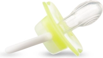 De fopspeen is uitgerust met een element dat in het donker licht geeft, zodat je hem snel vindt zonder het licht aan te doen.