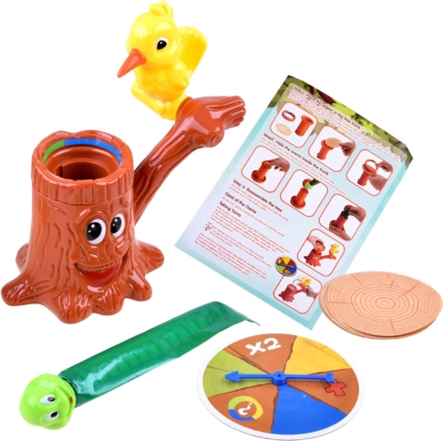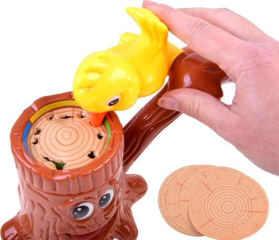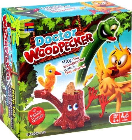 Het spel Dokter Specht – zieke boom is een ideale keuze voor gezellige avonden en kinderfeestjes. Spelers draaien om de beurt aan de draai-roulette, zetten de papieren ring op de gelote kleur en “tikken” met de specht op het papier. Het doel is zoveel mogelijk treffers te maken en als eerste door het papier te slaan zodat de veerworm uit de boom springt.