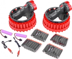 Beleef actievermaak met de tweedelige set elektrische blasters GROWLER. Het compacte ronde design met een roterend magazijn biedt plaats aan tot 28 schuimpijltjes per blaster en maakt snelle vuursalvo’s mogelijk – enkelvoudig of in bursts – met een bereik van circa 10 m. Inclusief oplaadbare 3,7 V-accu’s en USB-kabels voor eenvoudig opladen. Zachte EVA-pijltjes met zuignap hechten uitstekend op gladde oppervlakken.