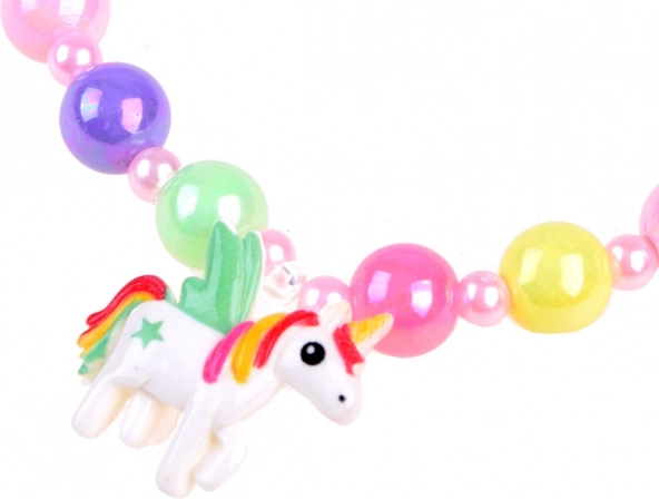 De kleurrijke kralenketting met een eenhoornhanger en twee ringen maken de outfit af en stimuleren magisch speelplezier.