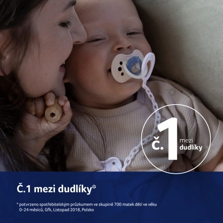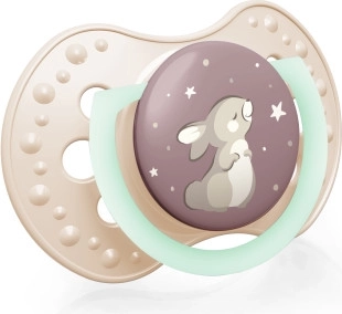 - Symmetrische vorm, geïnspireerd op de moederlijke tepel, zodat de speen willekeurig in de mond kan worden geplaatst.