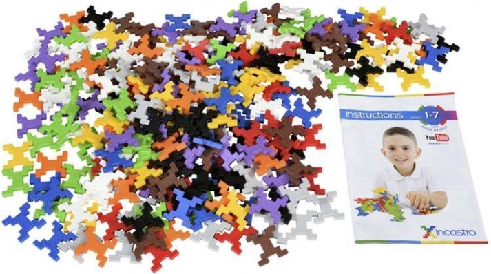 INCASTRO is een slimme bouwset, gemaakt in Italië, die dankzij de doordachte vorm van de stukjes bijna onbeperkte mogelijkheden biedt. Met enkele onderdelen maak je gemakkelijk vlakke patronen, torens, voertuigen, dieren en functionele modellen. De stukjes grijpen precies in elkaar en de constructies blijven stevig bijeen.