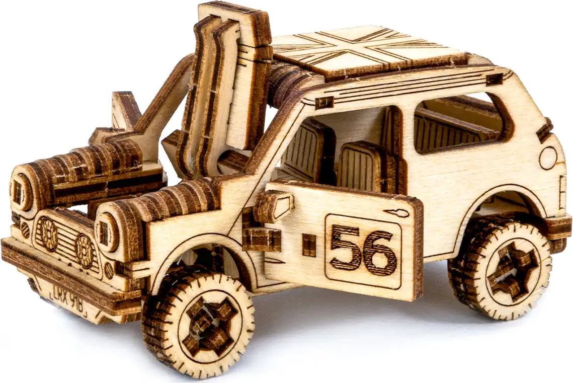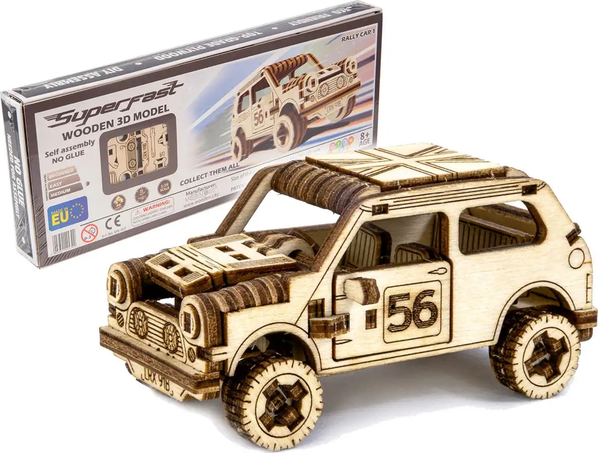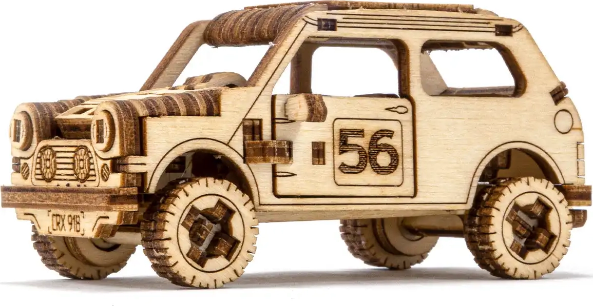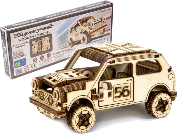 Dit mechanische 3D-model van een rallyauto is een perfecte keuze voor iedereen die van knutselen houdt. Dankzij de precieze lasersnede uit berkenmultiplex passen de onderdelen soepel in elkaar en geniet je van ontspanning en creativiteitsontwikkeling tijdens het bouwen zonder lijm. Het voltooide model valt op door realistische details, van de radiatorgrille tot het nummer op de deuren, en wordt een stijlvolle blikvanger op een plank of bureau.