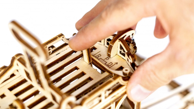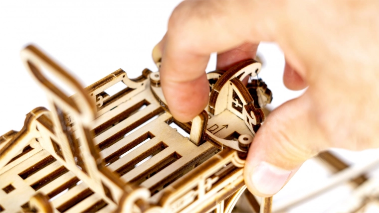 Laser-gesneden onderdelen van berkenmultiplex passen precies in elkaar. Volg de beeldinstructies en geniet van het bouwen.