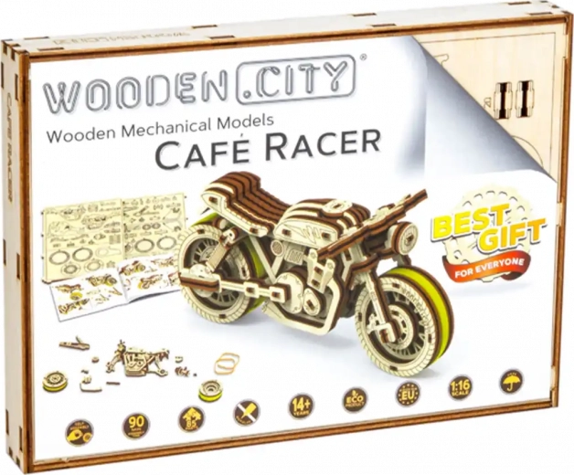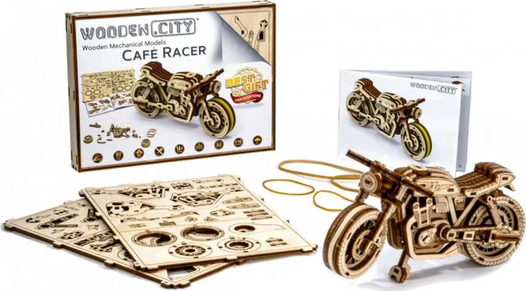 Houten 3D-puzzel motor Café Racer – WOODEN CITY (85 onderdelen)