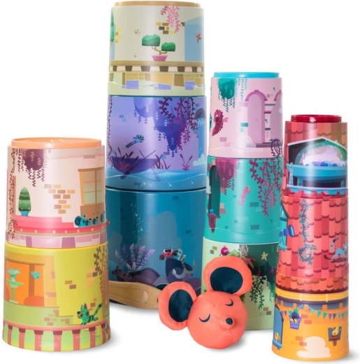 Muisje en haar fantastische sloopkasteel - deze bekertoren is pure fantasie! Kinderen kunnen in één keer een enorme toren bouwen van 11 bekers. Op de bekers staan illustraties van verschillende kamers van een sprookjespaleis, in diverse kleuren en met veel personages.