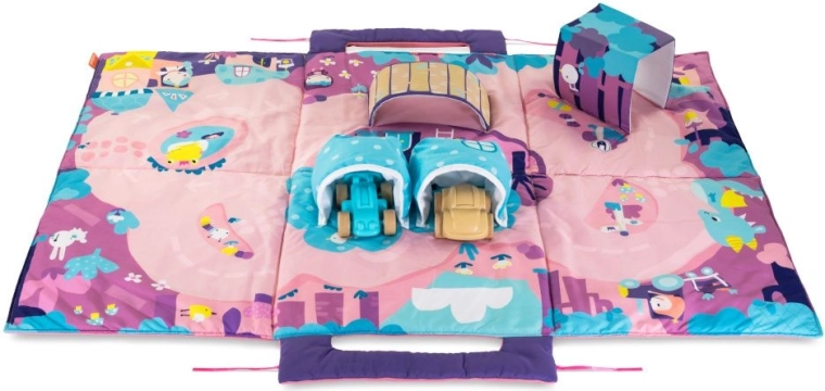 Eenvoudig te vervoeren - na het opvouwen kunnen de autootjes in de zakjes (garages) worden opgeborgen en dankzij de handgrepen kan de hele mat gemakkelijk en comfortabel worden meegenomen.