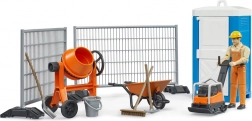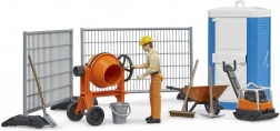 Betonmolen, trilplaat, kruiwagen, gereedschap, afzettingen en een mobiel toilet creëren authentieke scènes en ondersteunen creatief spel.