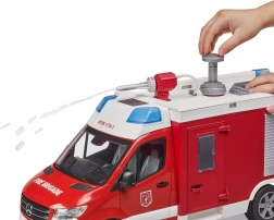 De realistische brandweerwagen MERCEDES-BENZ Sprinter van Bruder maakt elke kleine redder blij. Hij biedt een functionerend waterkanon met tank en pomp, een licht- en geluidsmodule, te openen deuren en opbergruimtes en zachte loopvlakken van de banden voor geweldig speelplezier. De hoogwaardige afwerking van duurzaam ABS-kunststof en compatibiliteit met BWORLD-accessoires zorgen voor een lange levensduur en veel plezier.