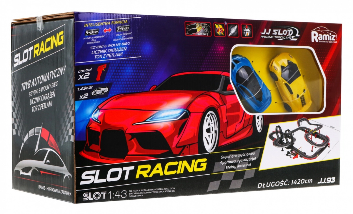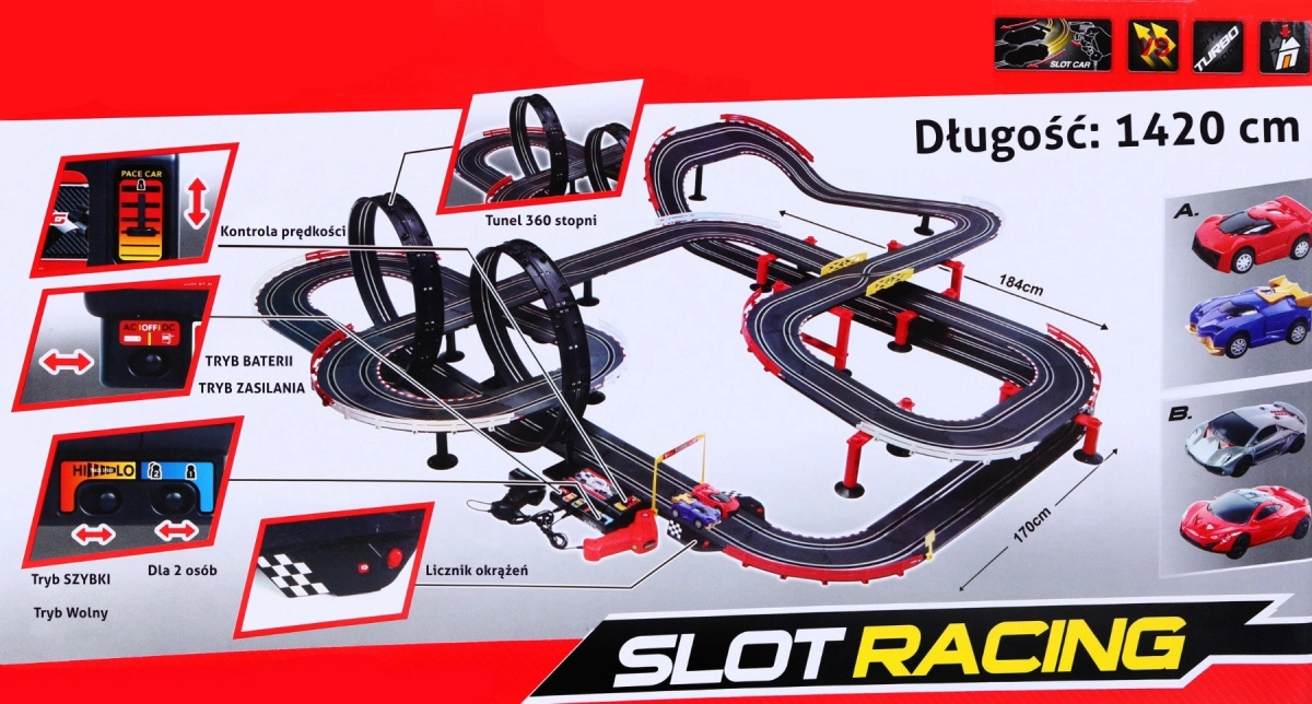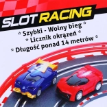 Racebaan van 14 meter lang biedt onvergetelijk plezier voor jonge racefans. Met deze baan kunnen kinderen een echt spannende simulatie van snelle races beleven met schakelbare snelheidsstanden.