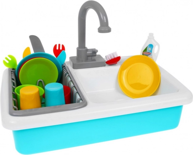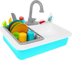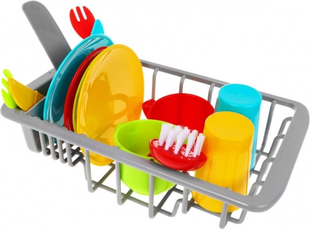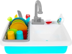 Maak kennis met de kindergootsteen met kraan en droger - de perfecte manier om kinderen te leren na het eten op te ruimen en daarbij veel plezier te hebben. Het speelgoed is geschikt voor kinderen vanaf 3 jaar en is voorzien van een CE-certificaat.