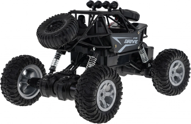 Met grote rubberen banden en hoge ophanging is deze auto ideaal voor rijden op verschillende oppervlakken, inclusief zand, modder en stenen.