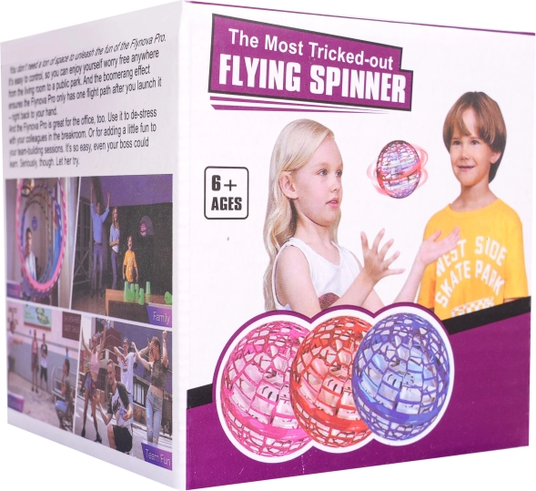 Deze lichte en robuuste vliegende bal met beschermend rooster verbergt de propeller aan de binnenkant, waardoor het spel veilig is, ook voor jongere kinderen. Hij reageert op richting en hoek van de worp – hij kan rechtuit vliegen of als een boemerang terugkeren. Kleurrijke LED-diodes maken elke vlucht extra spectaculair.
