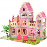 Het houten prinsessenhuis voor kinderen biedt de mogelijkheid om een prachtig huis te bouwen met creatieve elementen voor kinderen. De set bevat 183 onderdelen, waaronder twee prinsessenfiguren, waarmee kinderen hun vertelvaardigheden kunnen ontwikkelen. Het huis heeft meerdere verdiepingen en balkons, wat zorgt voor uiteenlopende speelscenario’s.