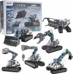 Deze educatieve bouwset brengt kinderen spelenderwijs de principes van hydrauliek en mechanica bij. Van 223 componenten bouw je 6 functionele modellen: een graafmachine, shovel, brandweerwagen met platform, kraan, grijper en bulldozer. Alle modellen delen een 360° draaibare opbouw en een rupsonderstel met rubberen rupsbanden voor soepele beweging.