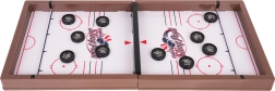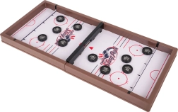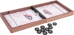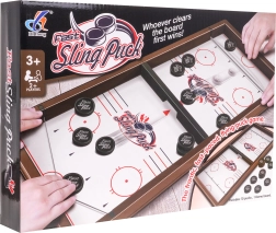 Snel en verslavend tafelspel voor twee spelers, waarbij je met elastieken de pucks door de opening in het midden naar de kant van de tegenstander schiet. Ideaal voor families en vrienden – traint reactievermogen, snelheid en coördinatie. Compacte afmetingen, stevige houten basis en eenvoudige regels voor plezier vanaf 3 jaar.