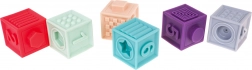 De set bevat 6 zachte blokken met cijfers en reliëfs. Ze ondersteunen vroeg tellen, sorteren en stapelen tot torens.