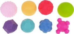 Deze uitgebreide sensorische set van 16 stuks verrukt kinderen vanaf 6 maanden en biedt veilige speelpret thuis en in bad. De verschillende texturen, kleuren en vormen moedigen op natuurlijke wijze ontdekken, knijpen en bouwen aan. De grotere ballen geven bij indrukken een geluid, wat nieuwsgierigheid en concentratie stimuleert.