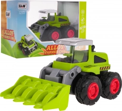 De voorlader is van metaal en volledig beweegbaar – je kunt hem eenvoudig optillen, laten zakken en gebruiken om kleine voorwerpen op te scheppen.