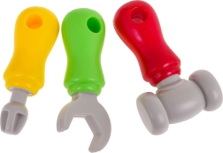 Inclusief schroeven, spijkers en kindergereedschap: schroevendraaier, verstelbare moersleutel en hamertje voor veilig schroeven en timmeren.