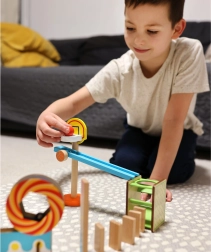 Mobiliteit: Houten dominoblokken zijn draagbaar en kunnen overal mee naartoe worden genomen. Ze kunnen zowel binnen als buiten worden gebruikt. Ze zijn dus ideaal speelgoed voor uitstapjes, vakanties en voor dagen waarop kinderen buiten in de tuin willen spelen.