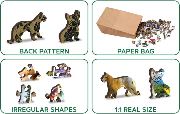 Ontdek het plezier met de stijlvolle houten puzzels van WOODEN CITY – dubbelzijdige 2-in-1 puzzel met speciaal gevormde stukjes en laser-gesneden details. Een deel van de stukjes heeft de vorm van dieren, gebouwen en objecten en kan rechtop staan als kleine figuurtjes. De hogere moeilijkheidsgraad en gladde randen zorgen voor een precieze afwerking, het HDF-materiaal is duurzaam en het hele product is ECO – 100% plasticvrij.
