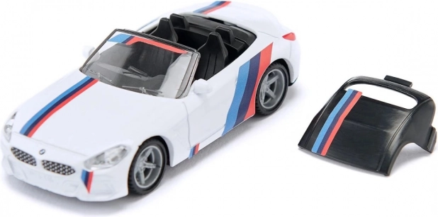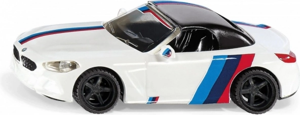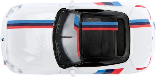 Stijlvol wit autootje geïnspireerd op de BMW Z4 M40i, met sportieve strepen in blauw en rood, gedetailleerde afwerking en kwalitatieve wielen. Ideaal als speelgoed voor kinderen én als verzamelmode... Meer tonen