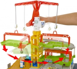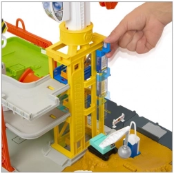 Gebruik de bijgeleverde kraan (50,5 cm) met een van de drie accessoires – een kist, platform of draagbaar 'toilet' – en verplaats deze over de bouwplaats. Inclusief een 1:64 Matchbox graafmachine, die je over de hele bouwplaats kunt laten rijden. Kleuren en decoraties kunnen variëren.