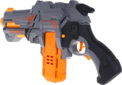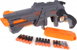 Het halfautomatische BLAZE STORM-pistool in een elegante grijze kleur biedt actievolle fun voor kinderen vanaf 8 jaar. Het biedt eenvoudige bediening, een onderliggend magazijn en schiet zachte foamkogels met een rubberen punt voor veiliger spel. Het wapen werkt op 4× AA-batterijen (niet inbegrepen) en is ideaal voor schietspelletjes binnen en buiten. Eenvoudige bediening, comfortabele grip, veilige foamkogels en een betrouwbaar magazijn voor maximaal plezier.