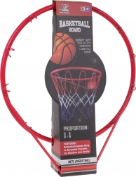 In de verpakking vind je alles wat je nodig hebt: een metalen ring met ophangpunten voor het net, een kleurrijk net, een bal met antisliptextuur, een handpomp met naald en ankerschroeven voor veilige bevestiging aan muur of bord. De set is perfect voor familieplezier, het trainen van schotprecisie en het ontwikkelen van de coördinatie van kinderen.