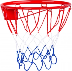 Hoogwaardig driekleurig net dat eenvoudig aan de haken van de ring te bevestigen is en een soepele doorval van de bal mogelijk maakt zonder in de knoop te raken.