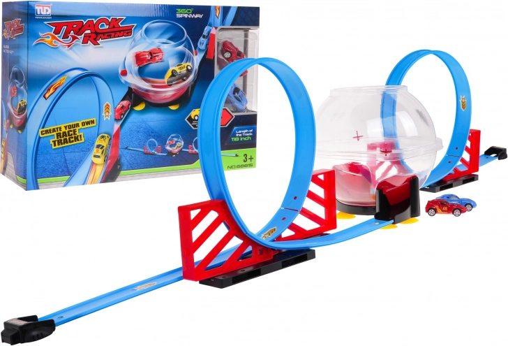 De leuke dubbele racebaan met een transparante bol biedt kinderen vanaf 3 jaar urenlang actie en fantasie. Twee aparte banen met vloeiende loops en een centrale bol maken racen met z’n tweeën mogelijk. De autootjes met pull-back-aandrijving kunnen een 360° loop maken, rijden de transparante ronde kamer in en draaien binnen op hoge snelheid. De bouwset bevat 28 onderdelen voor eenvoudige montage en omvat 2 raceautootjes en decoratieve stickers.