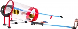 De transparante buis laat je de hele looping volgen. De autootjes razen met hoge snelheid en maken een indrukwekkende salto zonder batterijen.