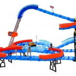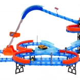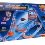 De baan combineert loopings, hoogteovergangen en een ladder met barrières in de bochten, zodat het autootje ook op hoge snelheid keurig op koers blijft.