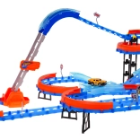 Ook inbegrepen zijn verkeersborden, decoratieve stickers en barrières in de bochten, die het autootje op de baan houden, zelfs in de wildste manoeuvres. Het bouwen stimuleert fijne motoriek, creativiteit en logisch denken. De afmetingen van de opgebouwde baan zijn ongeveer 90 × 40 × 22 cm.