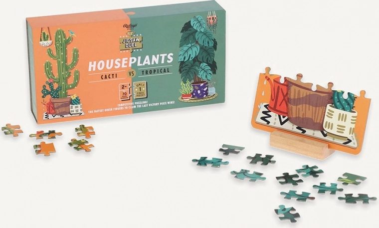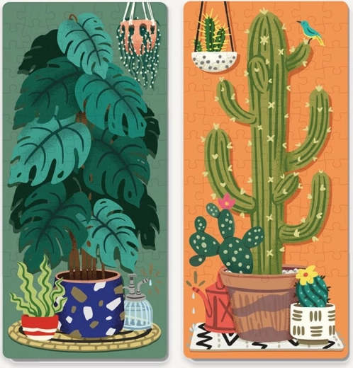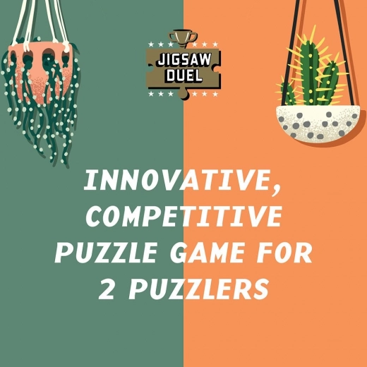 Geniet van een spannende tweepersoonspuzzel uit de serie Puzzle Duel – kamerplanten. Kies tussen motieven met cactussen en tropische planten, strijd om het laatste dubbelzijdige stukje en beleef plezier zonder plastic verpakkingen. Inclusief een houten standaard voor het laatste stukje en twee kleurrijke voorbeeldkaarten voor makkelijker leggen.